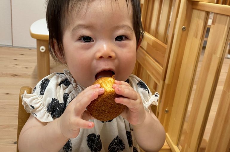 「いただきます。」のポーズも覚え、👋手を合わせてくれるようにも
