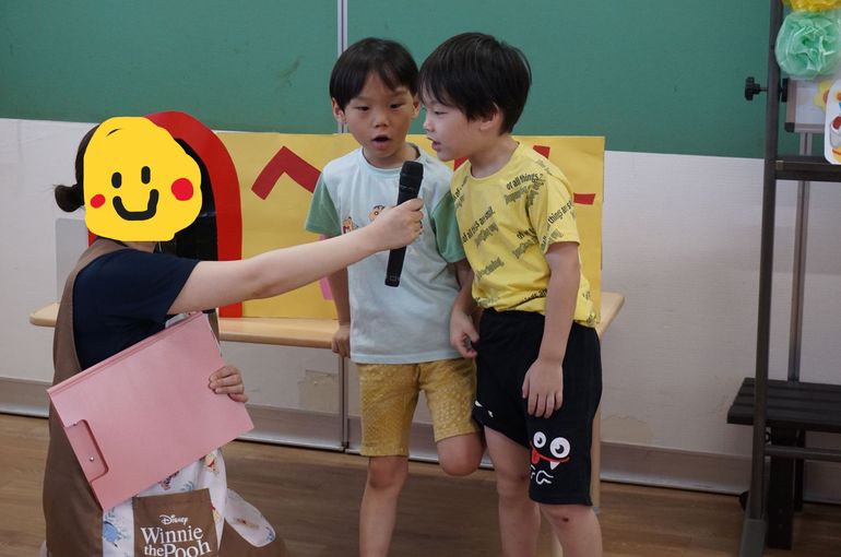 質問コーナーでは、仲良しのお友だちやきょうだいさんを指名して前に出てきてもらうのですが、