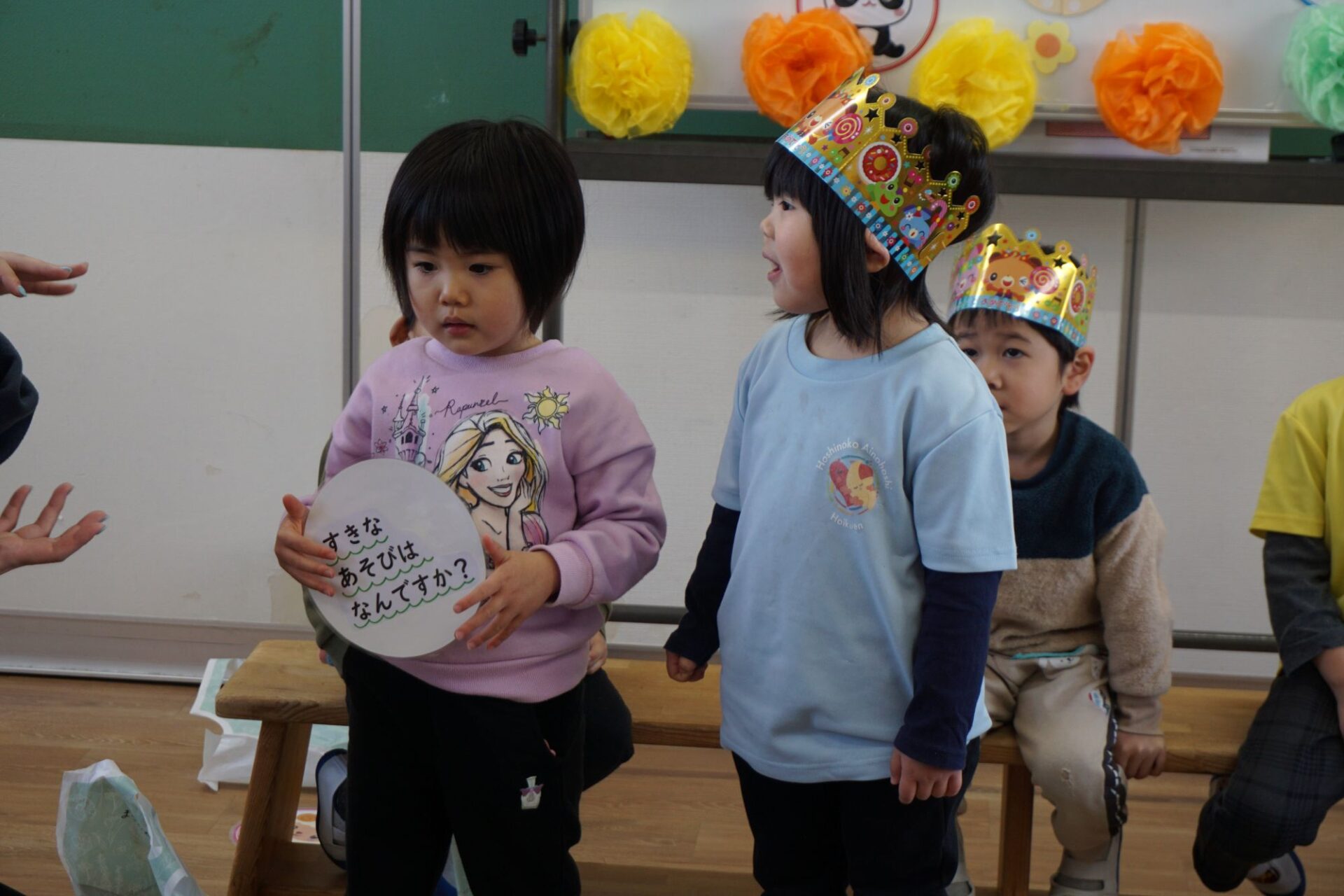 今月のお誕生日のお友だちは、少し恥ずかしがり屋の子が多かったですが、仲良しのお友だちやきょうだいが一緒に前に出てくれるととっても嬉しそうにインタビューに答える姿が見られました🤭💖