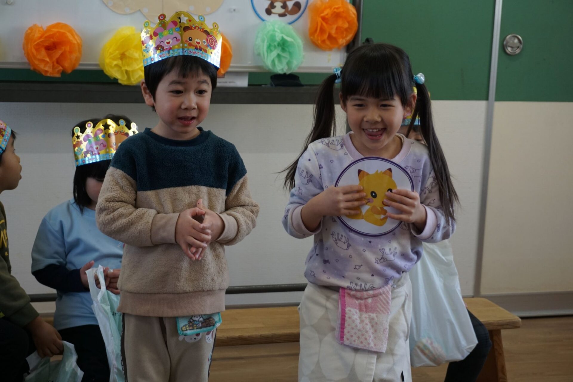 みんなから『おめでとう!』を言ってもらえて、ニコニコ笑顔の誕生児さん達でした♪