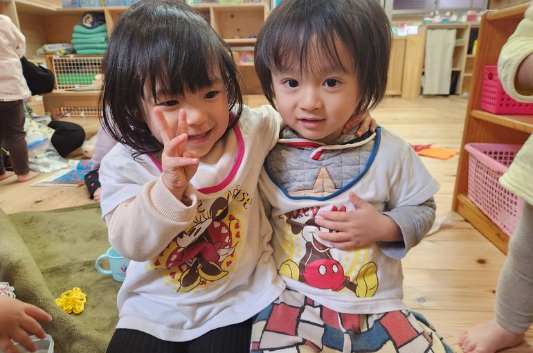 「にーらめっこしましょ♪」と誰かが始めると、面白い顔をして見せ合いっこをする子どもたちもとても可愛いです(笑)