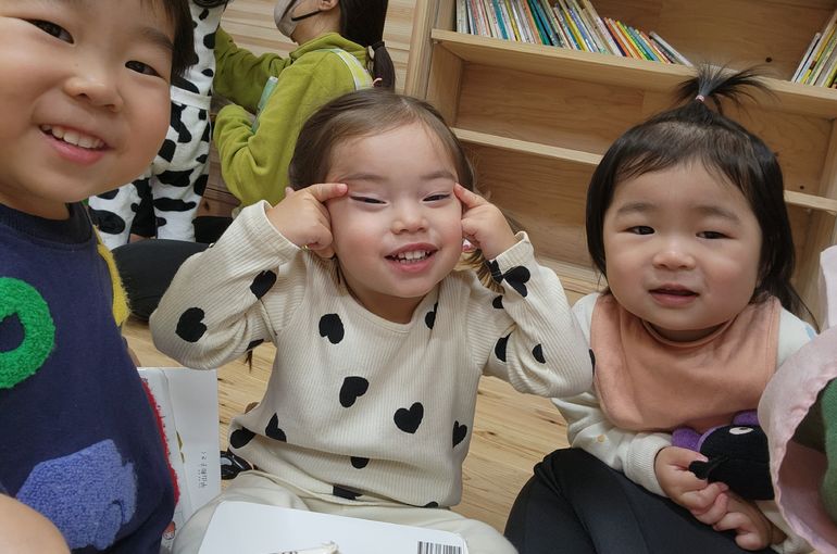 トップ画はクラスのお集まりで、絵本や歌を楽しむにじぐみの子どもたちです♡