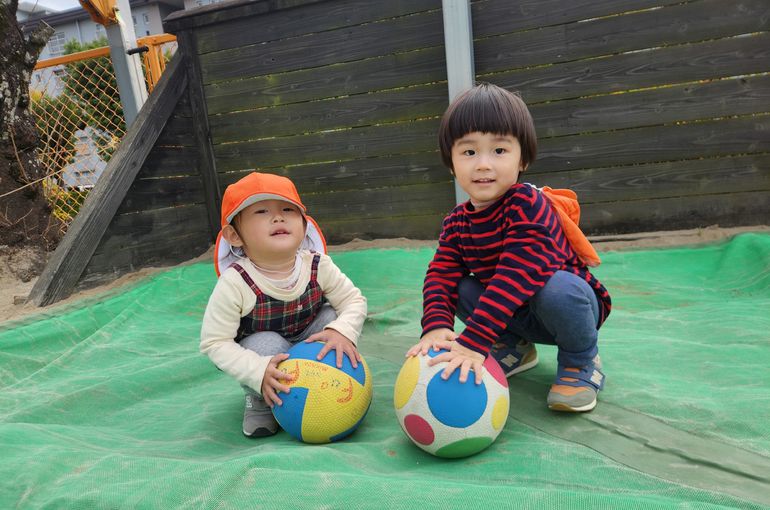 砂遊びやボールあそび、三輪車に乗って体をたくさん動かしています!