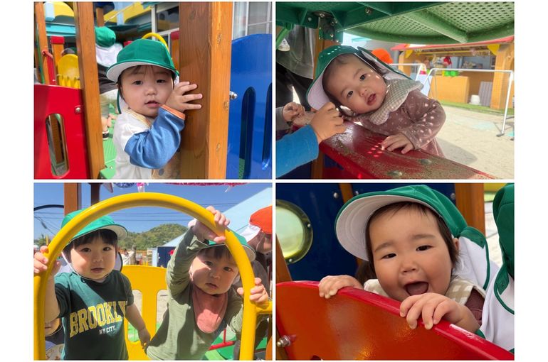 こちらは、みんなが大好きなお外あそびの様子です🌞「お外に行くよ!」と声をかけると飛んで喜んでくれます💚