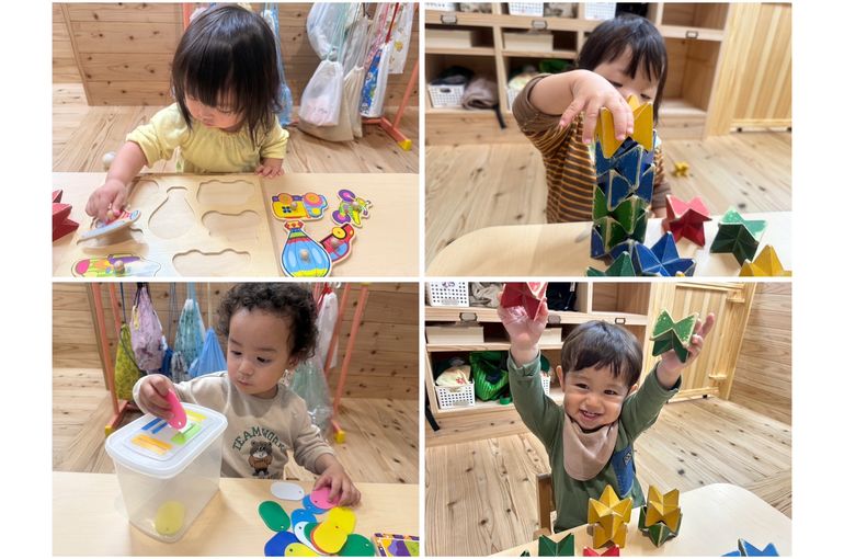 身体を動かす遊びも大好きですが、座って落ち着いて遊べるパズルや積み木も大好きなにじぐみさん🌈💚