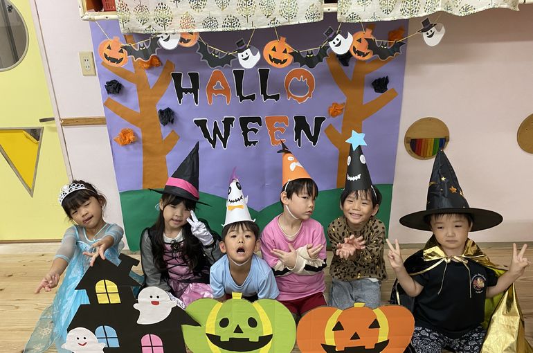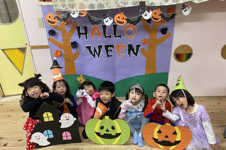 仮装をした園長先生に「トリック・オア・トリート!」と大きな声で言い、お菓子を貰ったり、未満児クラスのお部屋に遊びにいったりしました🦇