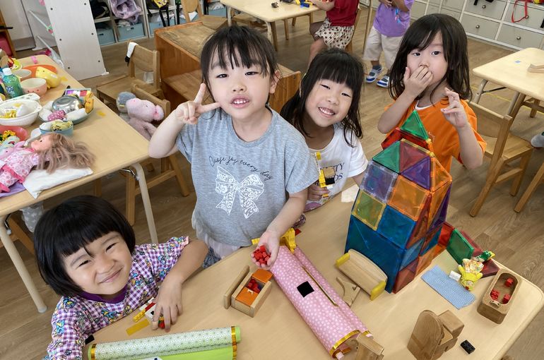 お部屋ではマグネットで大きなおうちを作って、その中に小さな家具を配置し、ブロックで作った動物やお人形を使っておうちごっこを楽しんでいます🏠会話の内容が可愛らしく、聞いていると微笑ましいです😌