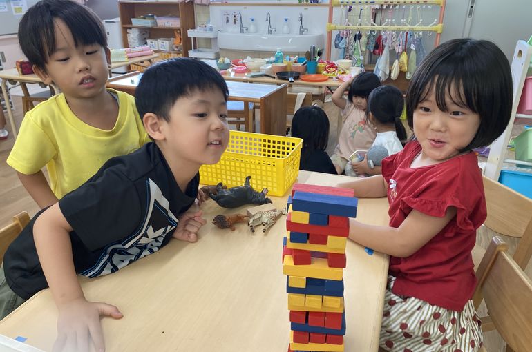 ジェンガで遊んでいる様子です✨