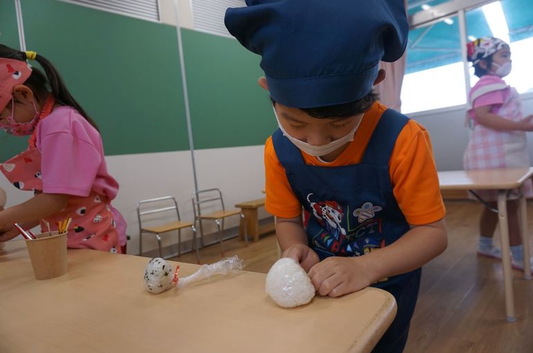 作ったご飯は、違うテーブルで遊んでいるお友だちや先生にもおすそ分けしてくれたり、メルちゃんに食べさせてあげたり、お友だちを会話をしながら黙々と遊んでいます😋
