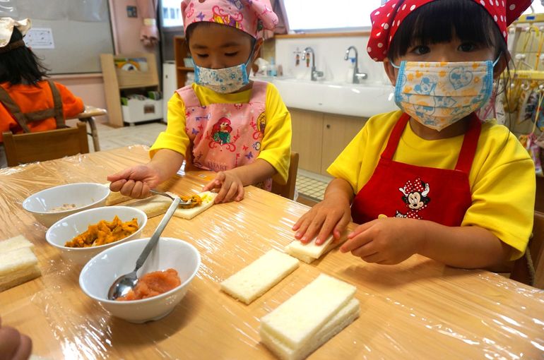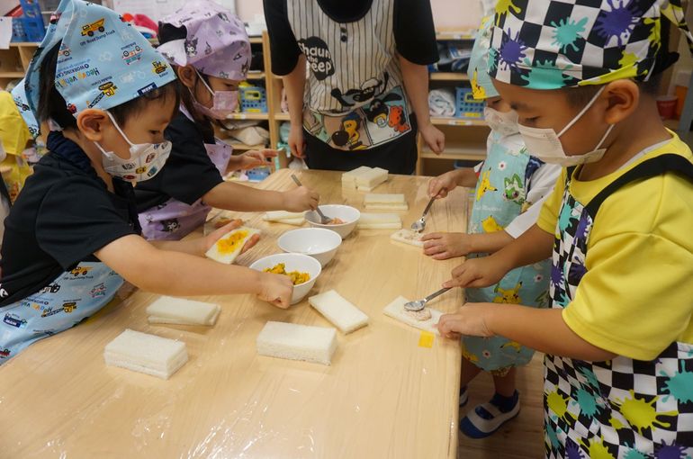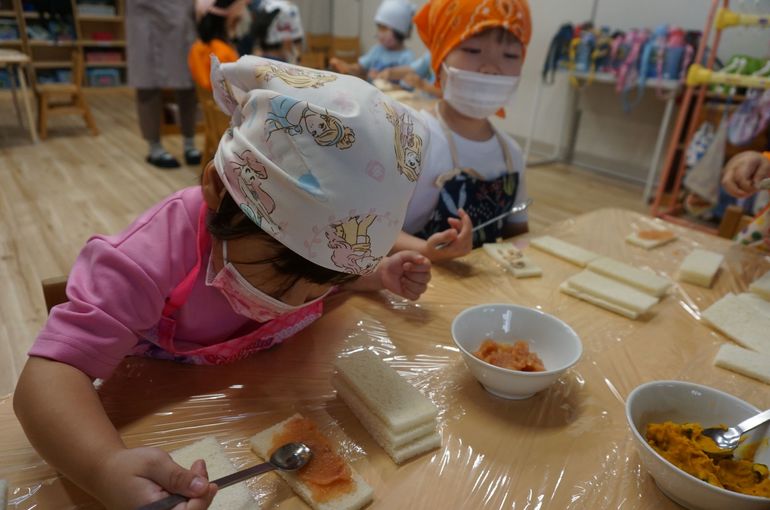 みんな説明をよく聞いて、好きな具材を上手にパンに塗ることができていました!