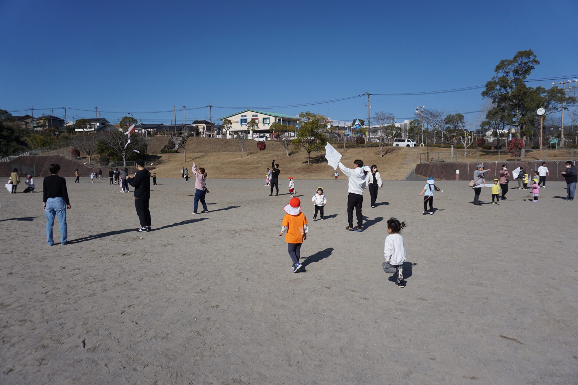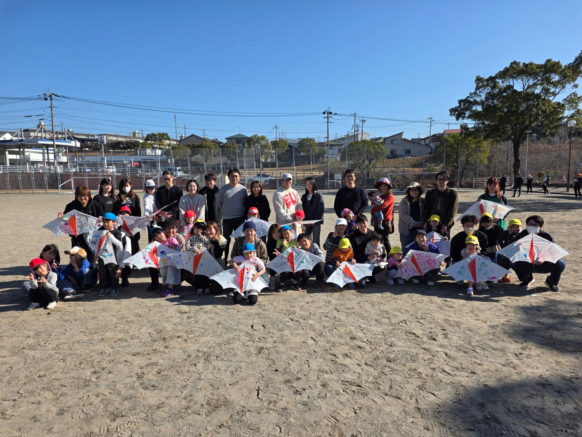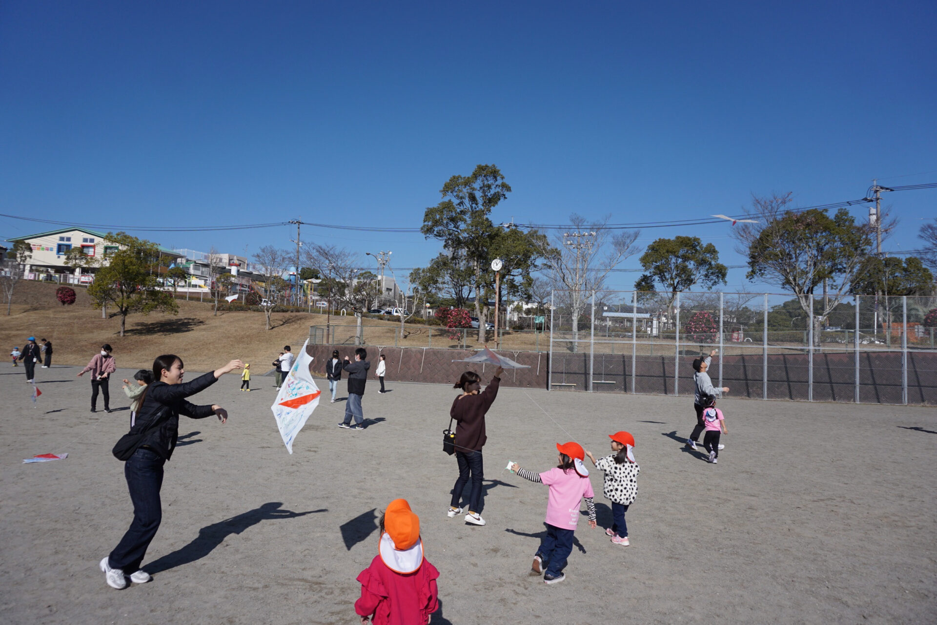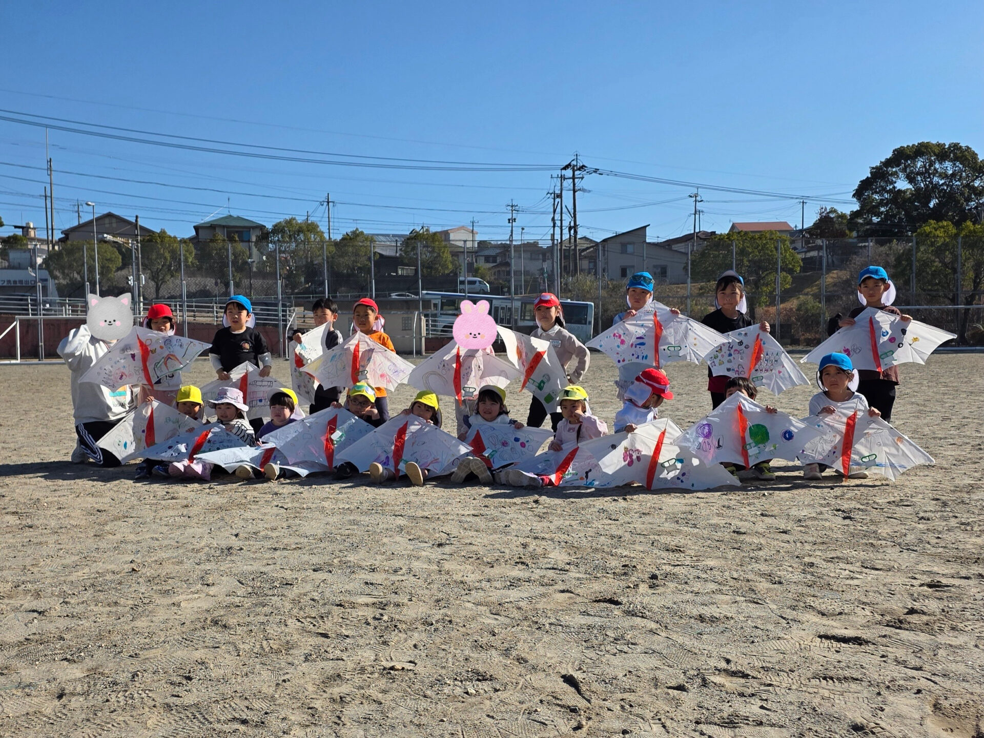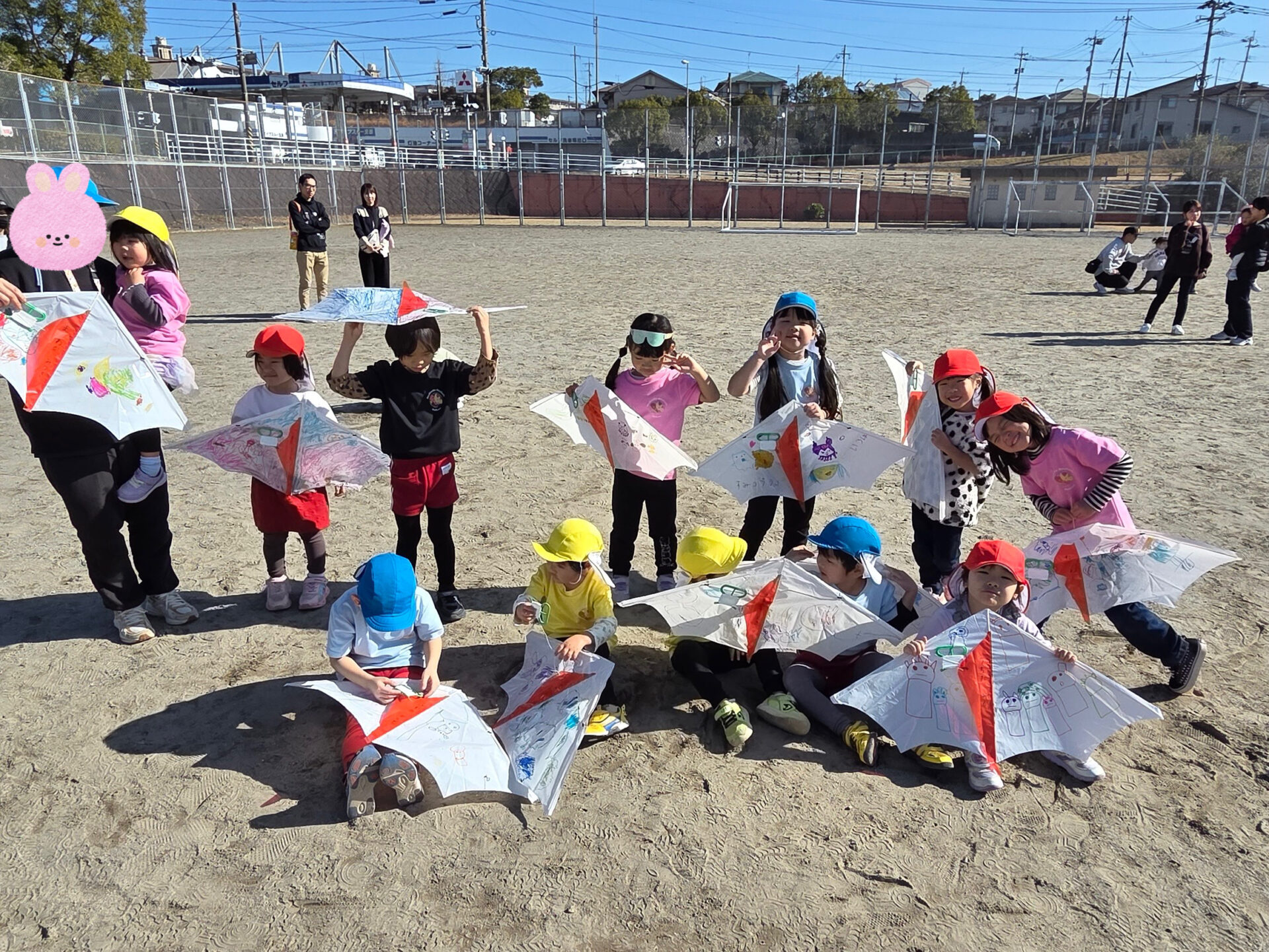 みんなとても上手に飛ばすことが出来ていました♪天気がとても良くて、凧が上がるととってもきれいで気持ちが良かったです!!