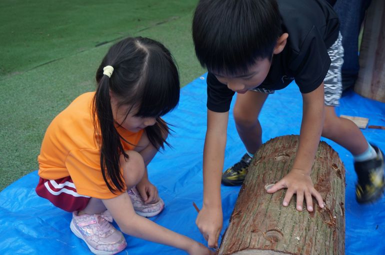 木の皮を剝ぐように言われると一生懸命剥す子どもたちでした!