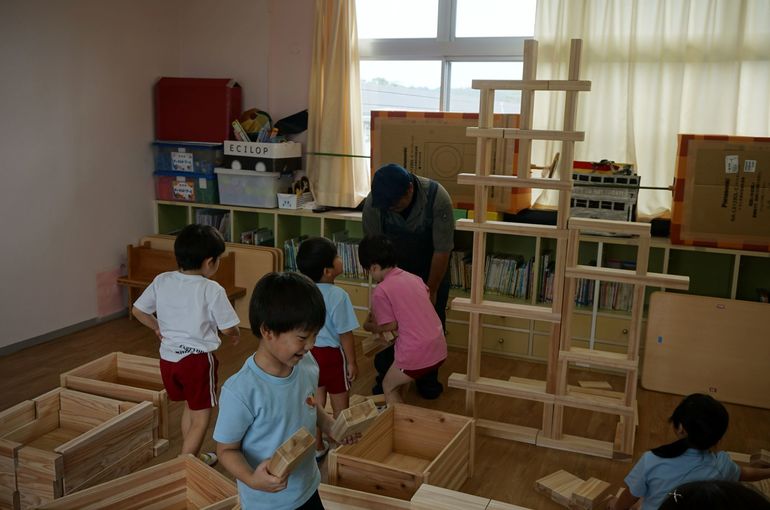 皮剥ぎ体験の後は、遊戯室に移動して積み木遊びを行いました!!