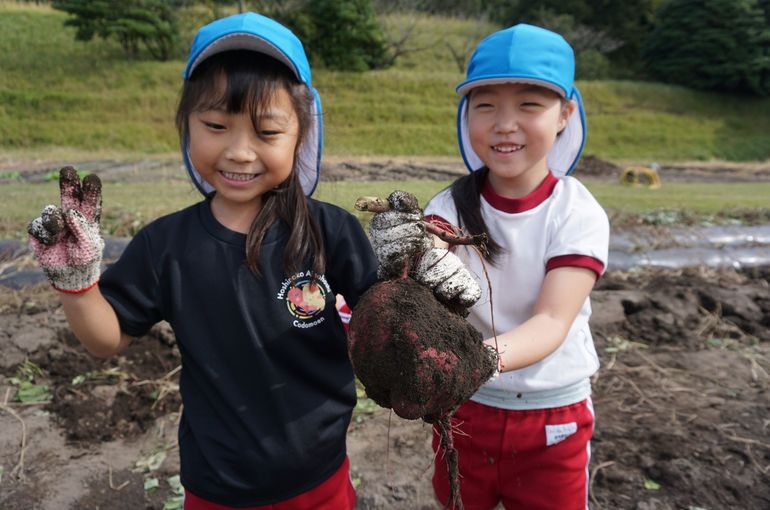 畑に到着すると、管理をしてくださっている方に元気よく挨拶をしてから、お芋ほりスタート!!