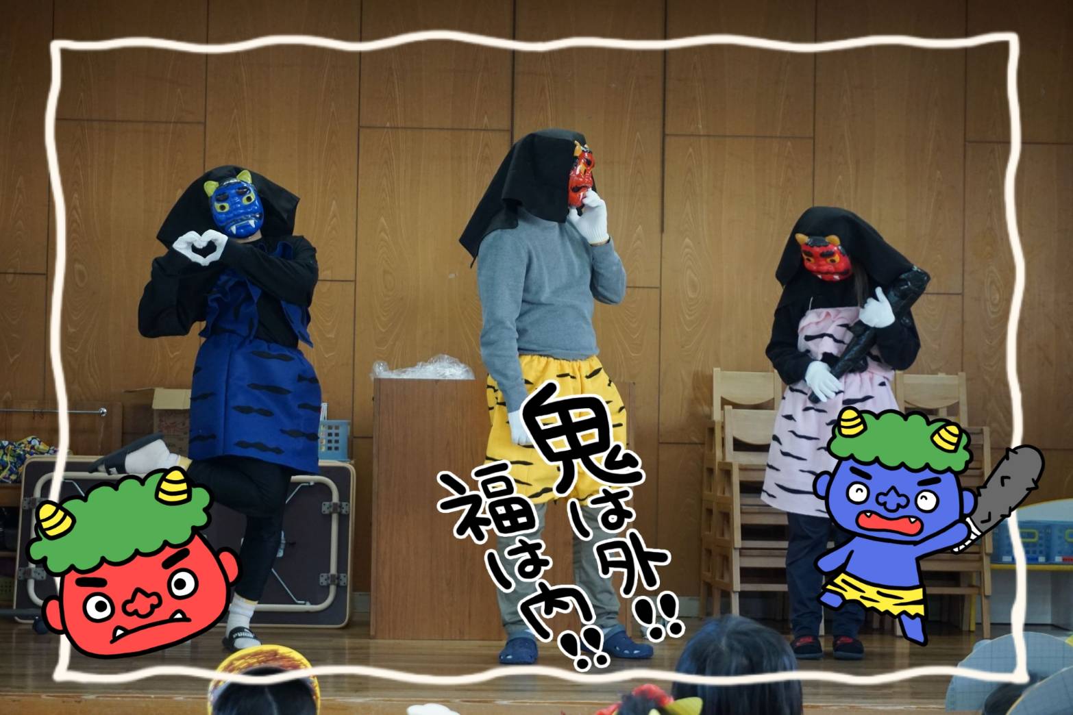 子どもたちの中には、『豆まき=オニが来る👹』と思っている子もいるようで、行事の由来や楽しいクイズがあっても少しソワソワする様子が見られました。。。