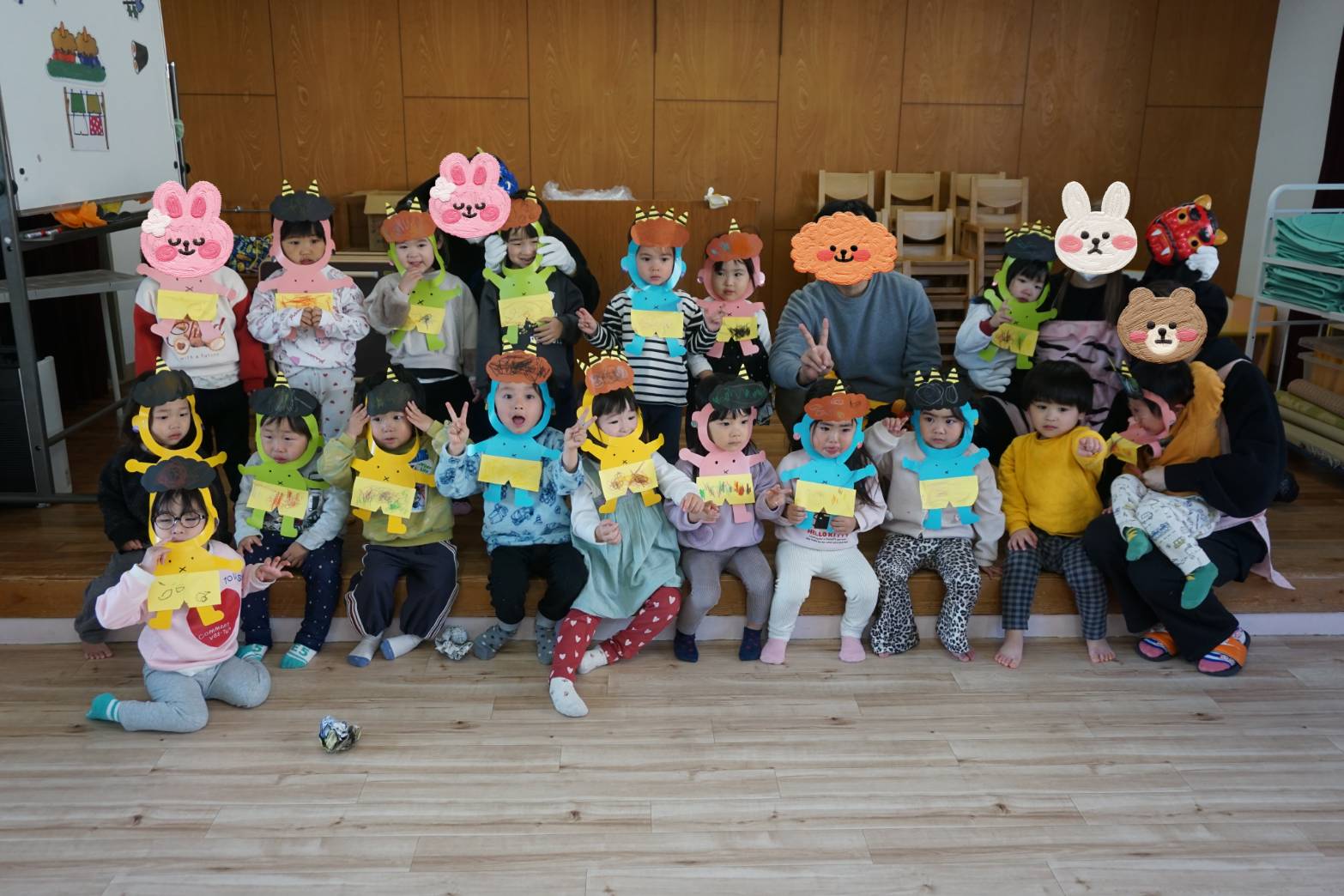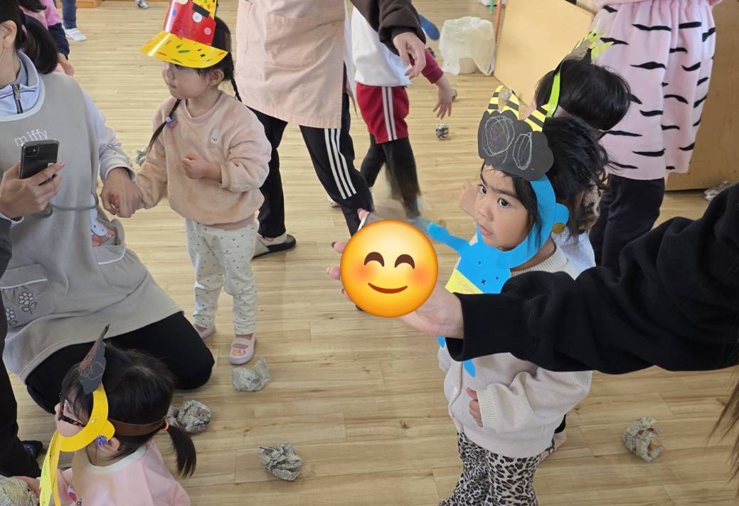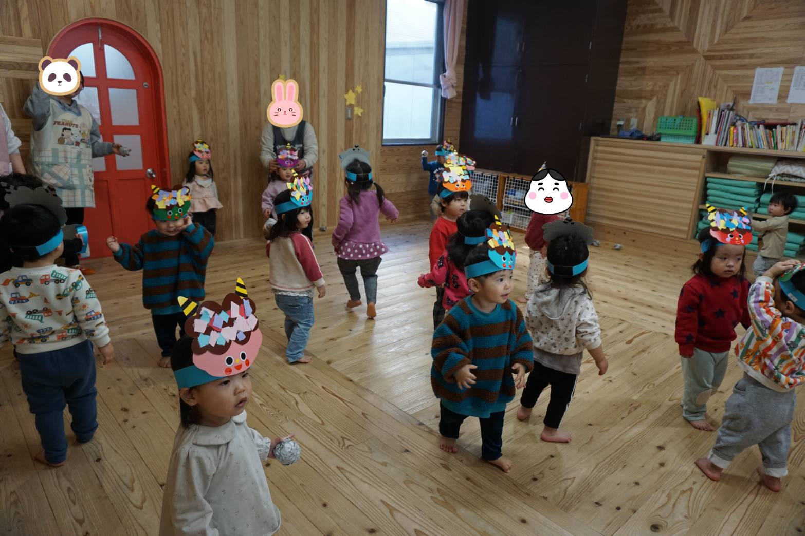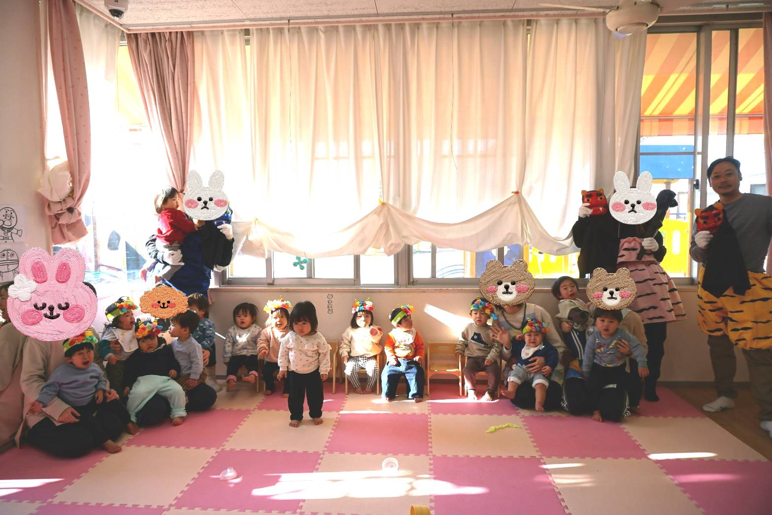 大きいお友だちは豆を一生懸命投げて楽しむ姿がありましたが、実際に鬼さんが近くに来ると、ちょっぴり怖かったのか先生の近くに避難する姿もありました🤭