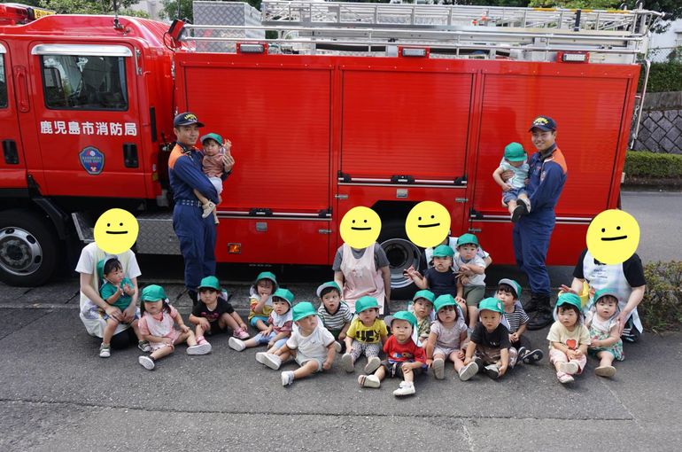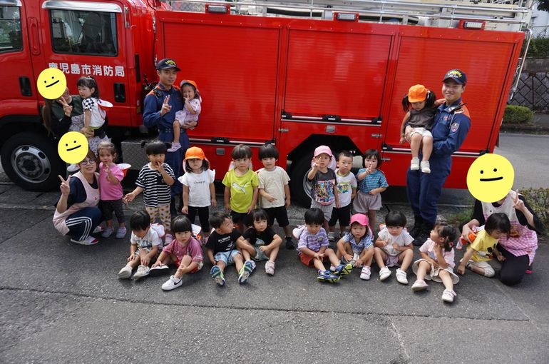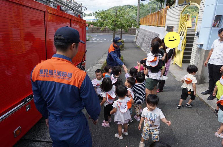 毎月避難訓練は行っているのですが、今回の避難訓練では消防士さん立会いのもとだったので、子どもたちは、いつもとは違う緊張感があったようです…。