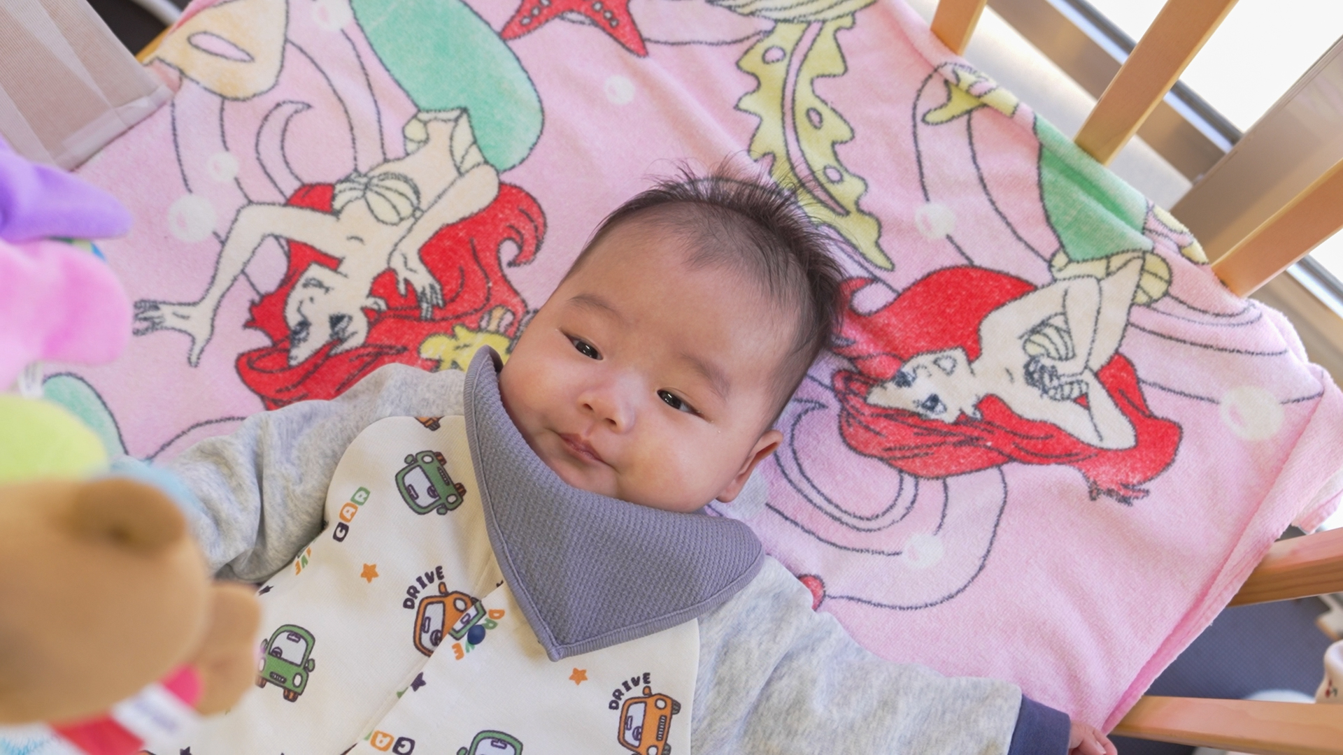 手や足に触れたり、声をかけたりして安心感を育みます。