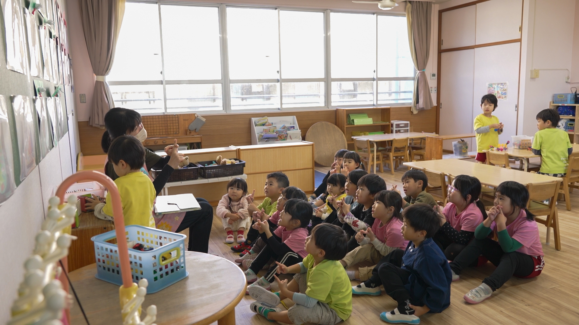 歌や手遊びで気持ちを整えて、一日が始まります。